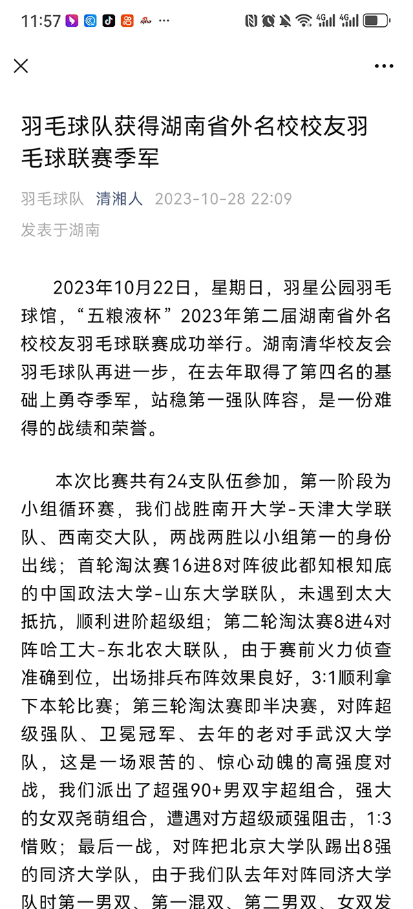 祝賀羊奶粉領(lǐng)軍品牌【歐能達(dá)】贊助的湖南省清華大學(xué)校友會(huì)羽毛球隊(duì)獲得“五糧液杯”2023年第二屆湖南省外名校校友羽毛球聯(lián)賽季軍?。?!