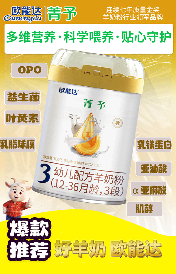 連續(xù)七年質(zhì)量金獎(jiǎng)的羊奶粉領(lǐng)軍品牌,寶寶喝得香,媽媽更安心!