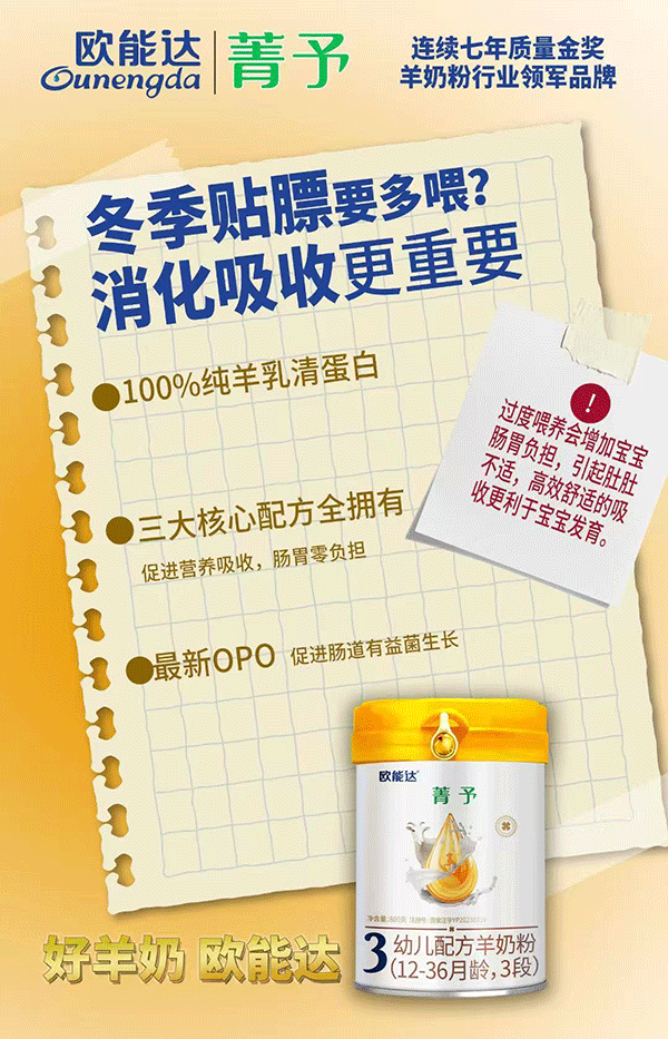 #歐能達菁予羊奶粉(七年質(zhì)量金獎)直接把“好吸收”焊在配方里: