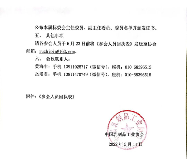 關(guān)于召開中乳協(xié)第三屆法規(guī)標(biāo)準(zhǔn)技術(shù)委員會(huì)成立大會(huì)的通知