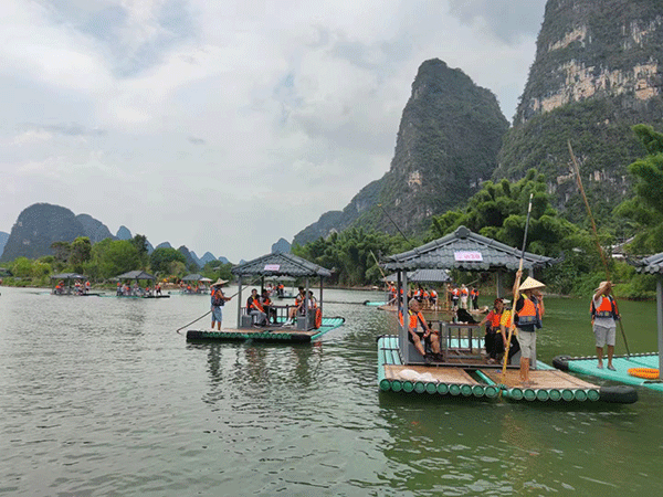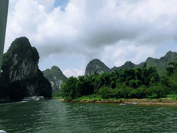 第一站,乘坐四星豪華船游覽國(guó)家5A級(jí)景區(qū)--美麗迷人的漓江。桂林山水以“山青、水秀、洞奇、石美”著稱。百里漓江“水繞青山山繞水,山浮綠水水浮天”。漓江的水,蜿蜒曲折、明潔如鏡、洞幽景奇、瑰麗壯觀。伙伴們置身于美景之中,享受著大自然的沐浴,褪去平日里的繁忙疲憊,怡然自得;舟行碧波中,人在畫(huà)中游,風(fēng)景美如畫(huà),在藍(lán)天白云,綠水青山的映襯下,一切都是那么靜謐美好......