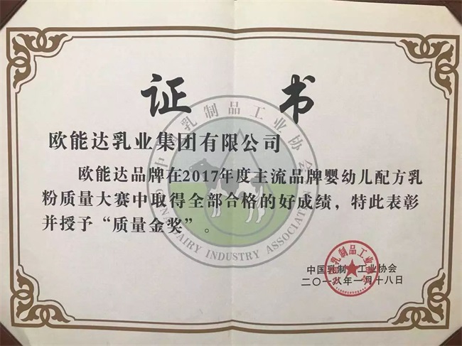 熱烈祝賀“首屆中國(guó)乳業(yè)質(zhì)量年會(huì)”在京召開(kāi)!并祝賀【歐能達(dá)】榮獲2017年主流品牌嬰幼兒配方乳粉質(zhì)量大賽“質(zhì)量金獎(jiǎng)”!