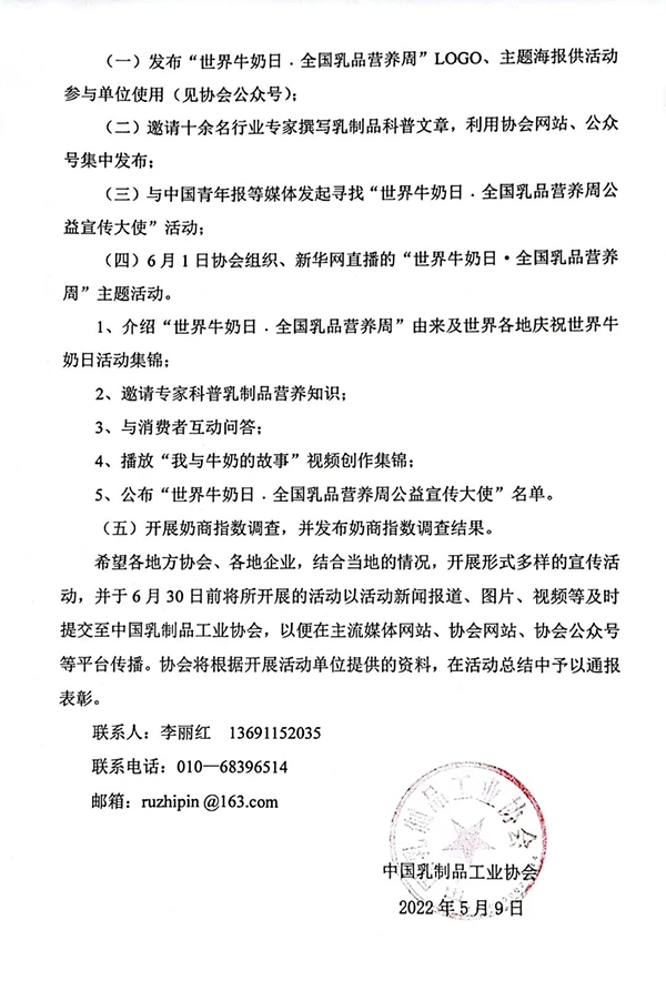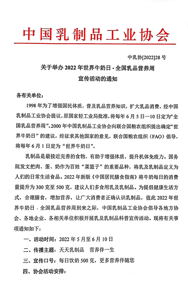 關(guān)于舉辦2022年世界牛奶日·全國乳品營養(yǎng)周宣傳活動的通知